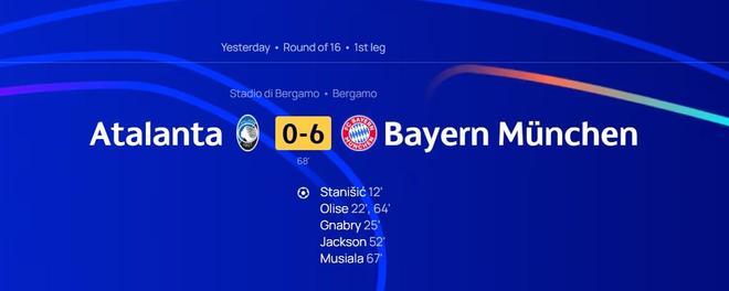 根据Stats Foot的统计,本场比赛被拜仁打进6球也让亚特兰大成为了自2014年的罗马以来,第二支在欧冠的主场比赛中被对手单场打进至少6球的意大利球队。